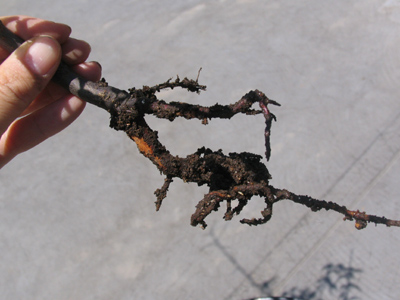 コガネムシに食われた梅の根